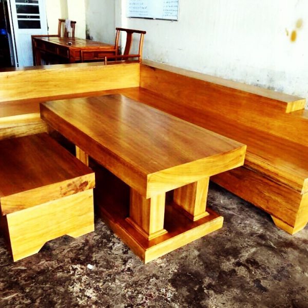 Bàn ghế gỗ nguyên khối ba băng gỗ Gõ Bông Lau